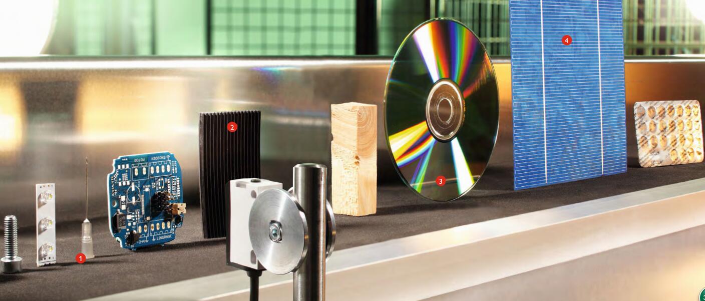1 在金屬背景下穩(wěn)定地檢測(cè)細(xì)小的針頭(精準(zhǔn)的激光光束以及精確的背景抑制)