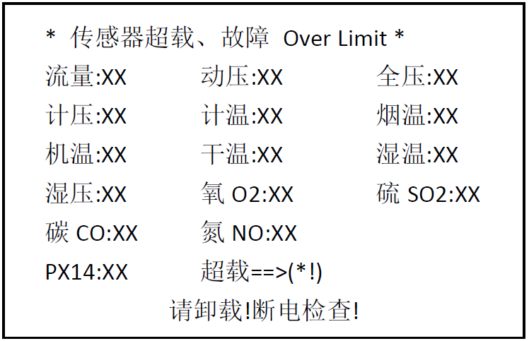 范圍在其定貨時(shí)規(guī)定,傳感器一旦超載,儀器將及時(shí)報(bào)警,顯示如下: