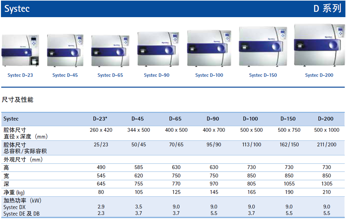 Systec D 系列臺(tái)式滅菌器有七種尺寸可供選擇,腔體容積從23升到200升。理想的內(nèi)部腔體容積,搭配結(jié)實(shí)緊湊的外觀。每種尺寸都有相應(yīng)的*佳裝載容量,從而適用于標(biāo)準(zhǔn)的培養(yǎng)基組培瓶和錐形瓶。