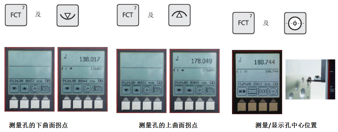一按鍵盤_上的“FCT"鍵,再按功能鍵“測(cè)量孔的中心位置”屏幕顯示孔的中心高度。