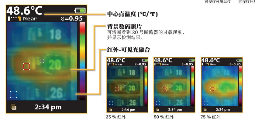 1. 全面測溫設(shè)計 每一款福祿克可視紅外測溫儀均裝有內(nèi)置數(shù)字?jǐn)z像頭,具有熱圖覆蓋 功能,可即時判斷故障的準(zhǔn)確位置。
