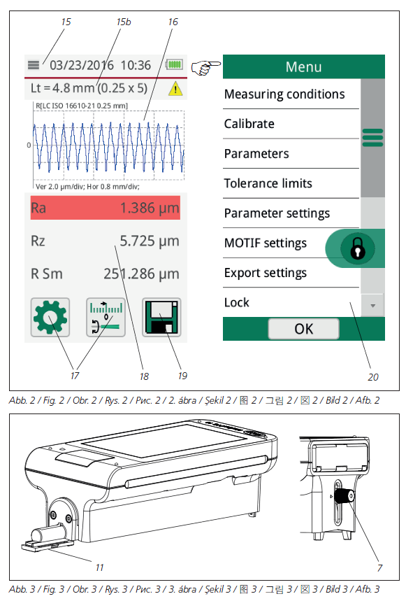 可在觸摸屏中打開邏輯菜單結(jié)構(gòu)設(shè)置該儀器支持的所有功能。通過代碼編號(hào)可禁止儀器設(shè)置,也可防止未經(jīng)授權(quán)的修改。掃描長度可以選擇也可以手動(dòng)輸入。取樣長度數(shù)目可以調(diào)整。掃描長度也可包含截止波長一半的預(yù)行程和過行程??梢允褂?Ls 過濾器根據(jù) DIN EN ISO 3274 對(duì)記錄的輪廓進(jìn)行過濾(可以關(guān)閉)。