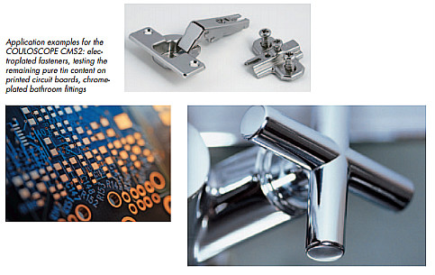 COULOSCOPE CMS2的應(yīng)用實(shí)例:電鍍緊固件,測(cè)量PCB板上的剩余純錫厚度,鍍鉻件以及浴室用品。