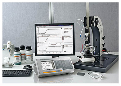 COULOSCOPE CMS2 STEP測(cè)量: 帶有球狀支撐和可旋轉(zhuǎn)支撐板的V18支架。 測(cè)量槽存放架可存放3個(gè)100ml的實(shí)驗(yàn)室瓶。