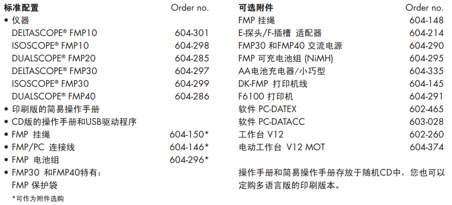 標(biāo)準(zhǔn)配置及可選配件