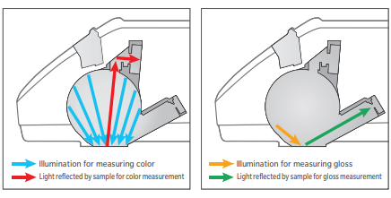 di: 8°, de: 8° ( 漫射照明 : 8° 觀察 ) SCI ( 包含鏡面反射光 ) / SCE ( 排除鏡面反射光 ) 模式可切換 |