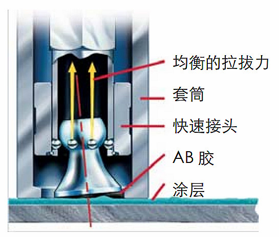 過程:  用20MM的錠子,涂上AB混合膠,粘到需要檢測的涂層上,(一般一個(gè)區(qū)域粘3-5個(gè)錠子,以求平均值)8-24小時(shí)后,用20mm套筒切割器(裁刀)套上20mm錠子,把邊沿連接的油漆涂層裁斷,然后套上20毫米的套筒連接器,鎖緊,打上液壓開始拉拔,嘭的一聲,涂層被拉掉。顯示屏上顯示公斤力或者壓力;瞬間的讀數(shù)鎖死在屏幕上。 后卸掉20mm錠子,湊夠數(shù)量放到火上燒紅,放到?jīng)鏊铩湫氯绻?。下次備用?/span>