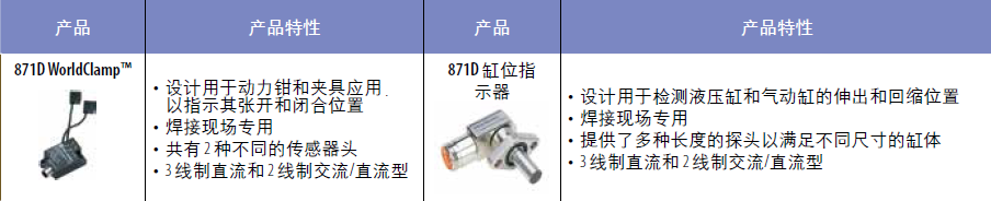 美國AB羅克韋爾氣缸感應式接近傳感器用于氣動和液壓缸的行程終端感測,也可用于電力夾鉗和夾持器上的開/關指示。Bulletin 871D 缸位置傳感器是液壓和氣動缸的行程終端檢測的理想選擇。每個傳感器均安裝在標準的端口內缸位置傳感器銷式模式中。提供特殊墊片,以針對特定應用改變探針長度。