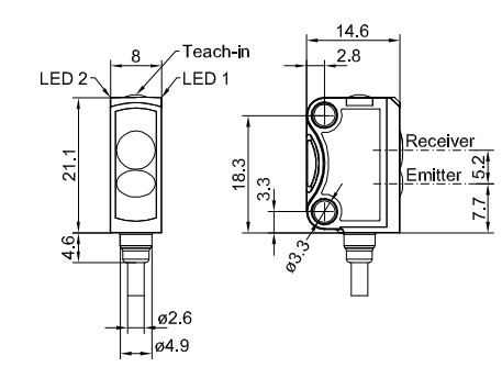 工作電壓+ 10 … 30 V DC 外形尺寸 21.1 × 14.6 × 8 mm