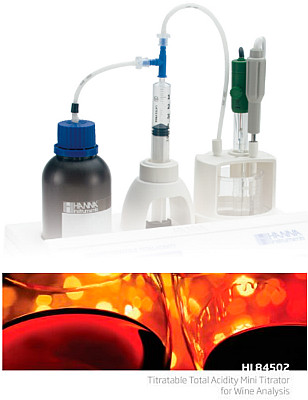 HI84502是專門為測量酒中總酸度而設(shè)計(jì)的一款方便、快捷的迷你自動滴定儀,它預(yù)設(shè)分析方法和強(qiáng)大的算法來檢測滴定終點(diǎn)最終結(jié)果以酒石酸gL顯示出來。HI84502采用了精確的活塞式加藥系統(tǒng),能夠保證精確的滴定劑用量。并用哈納標(biāo)準(zhǔn)對泵進(jìn)行校準(zhǔn),確保測量的準(zhǔn)確率。直觀的LCD顯示界面使儀器易于使用,專用HELP鍵指導(dǎo)用戶正確設(shè)置、校準(zhǔn)以及故障排除。專為測定葡萄酒,果汁和葡萄汁中的pH值和可滴定酸度而設(shè)計(jì)。測量范圍:0.1 to 5.0 g/L(ppt)、4.0 to 25 g/L(ppt)【總酸/酒石酸】;- 2000.0 mV to +2000 mV【氧化還原】 -2.0 to 16.0 pH、-2.00 to 16.00 pH【酸度】;-20.0 to 120.0°C、-4.0 to 248.0°F、253.2 to 393.2 K.【溫度】