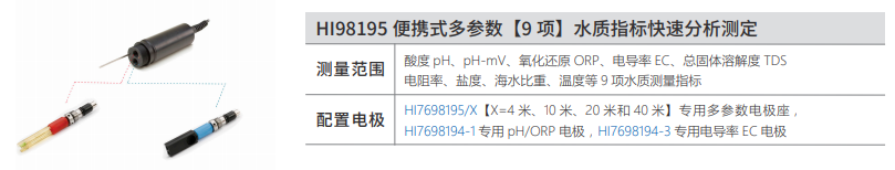 HI98195是一款防水便攜式高精度專業(yè)多參數(shù)分析測(cè)定儀,酸度pH-pH-mV轉(zhuǎn)換-氧化還原ORP-電導(dǎo)率EC-電阻率-總?cè)芙夤腆wTDS-鹽度-海水比重-大氣壓強(qiáng)-溫度等常規(guī)重要10項(xiàng)水質(zhì)指標(biāo)快速測(cè)量