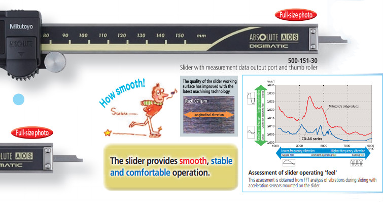 ABSOLUTE 數(shù)顯卡尺 500 系列 — 采用特有的ABSOLUTE 編碼器技術 CD-AX/C,電磁感應編碼器允許暴露在冷卻液、水、塵或油的車間環(huán)境下使用。(除0-300mm型)