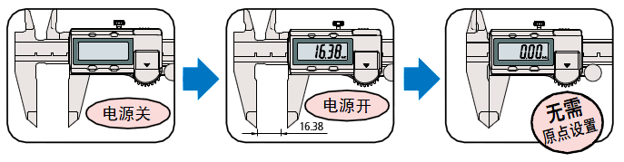 內(nèi)置ABSOLUTE 標尺意味著卡尺通電后不用設置原點就可以立即進行測量。就像用游標卡尺測量一樣簡單