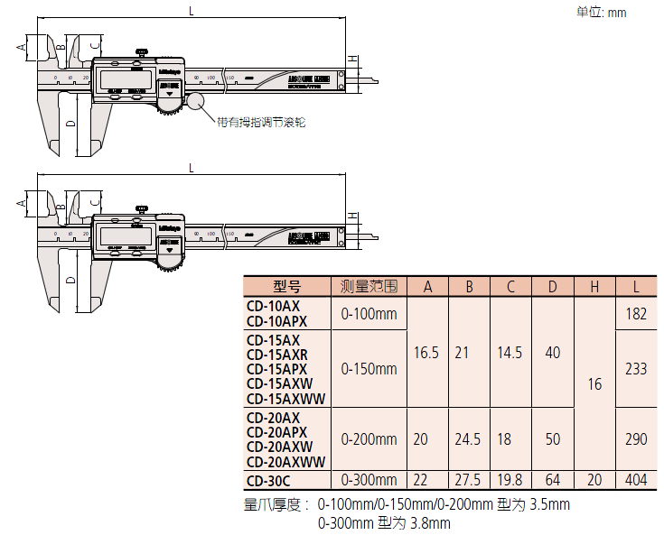 500-181-30* CD-15APX 0 - 150mm 薄片 —— ——