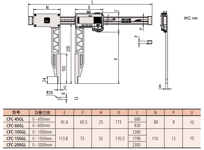 552-150-10  CFC-45GL  0 - 450mm(20.1 - 470mm)  ±0.06mm