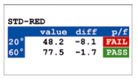 所有被選擇的角度在同一個(gè)點(diǎn)上測(cè)量,并立即顯示測(cè)量結(jié)果 包括:統(tǒng)計(jì)、差值、合格/不合格結(jié)果。
