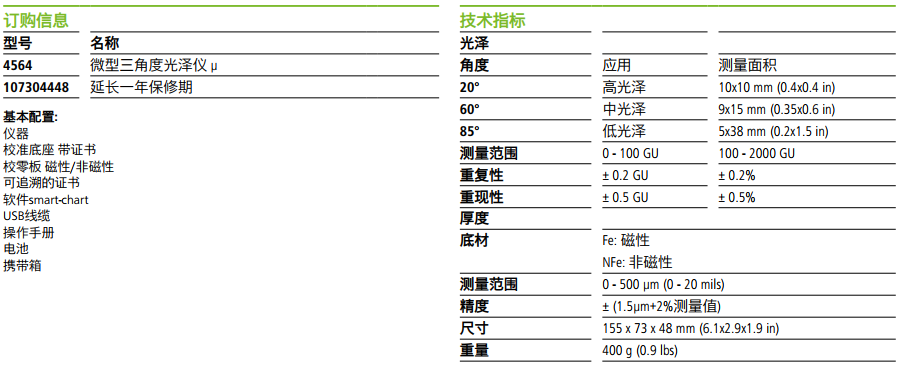 微型三角度光澤儀μ--光澤和厚度測量集于一身