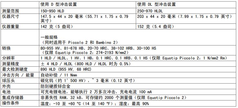 測(cè)量范圍 使用D型沖擊裝置150-950 HLD 使用DL型沖擊裝置250-970 HLDL