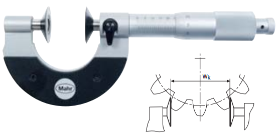 精密干分尺M(jìn)icromar 40 SM圓盤形測砧,通過測量模數(shù)為0.8的跨齒距W,間接測量出圓柱直齒輪的齒厚