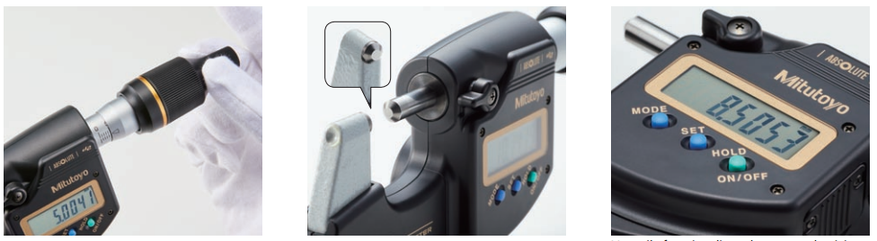 ? 本款千分尺所擁有的一系列支持靈活測(cè)量的特性,包括可切換的分辨力 (0.0001mm/0.0005mm)、功能鎖、預(yù)設(shè)置等。