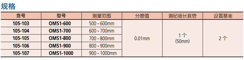 帶測砧接長套管的可調(diào)測量范圍。 50mm 測微螺桿行程。