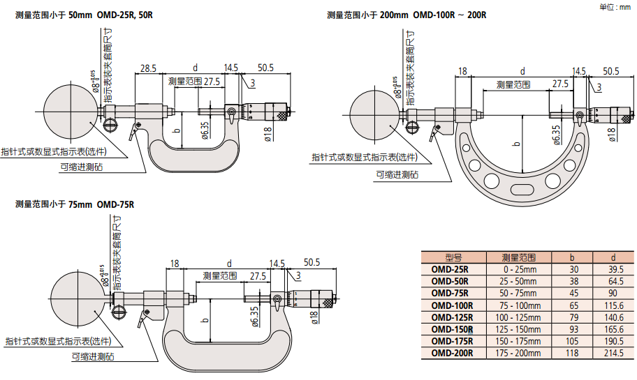 可帶表式外徑千分尺—Mitutoyo 107 系列OMD