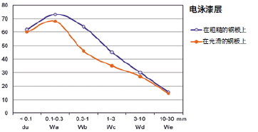 用相同的電泳漆涂裝于粗糙及光滑鋼材??梢钥闯?,粗糙鋼材的 Wb 及 Wc 值都相對較高。