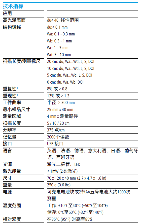 5. 晦澀度 du 和 DOI 的測(cè)量與涂裝系統(tǒng)無關(guān) 6. 輕松的滾輪操作,大型多語言顯示屏