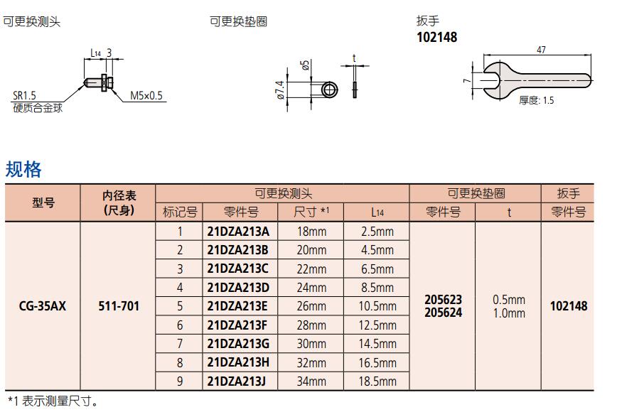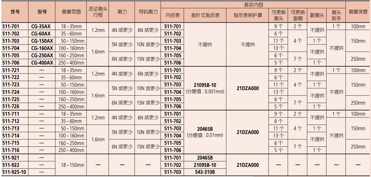 三豐內(nèi)徑表511 系列CG-AX ,原有精度不變的條件下,提供一個(gè)更長的行 程。