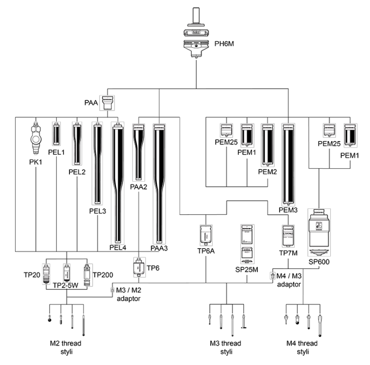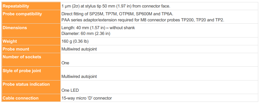 PH6M與多芯測頭TP7M、OTP6M和SP600M兼容,以及通過使用PA轉接頭與雷尼紹全系列測頭兼容。