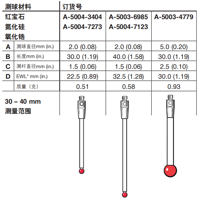 用于行業(yè)標準的坐標測量機測頭TP2、TP20、TP200和REVO?的測針。