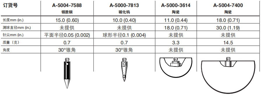 針型測針專用于螺紋牙型、特定點及刻劃線(按較低精度)的檢測。