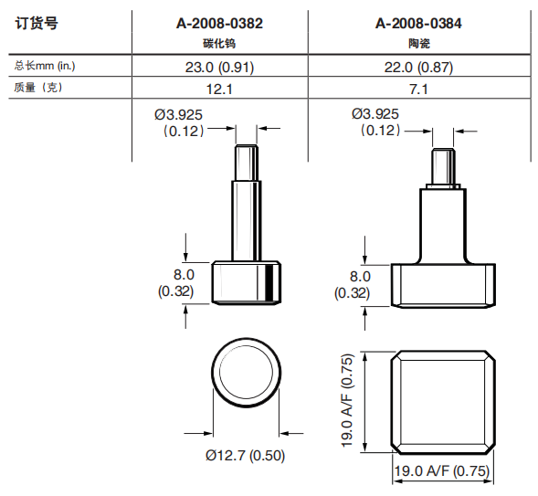 刀具基準(zhǔn)盤(pán)形測(cè)針?12.7 mm,碳化鎢制,長(zhǎng)度23 mm,產(chǎn)品代碼: A-2008-0382: