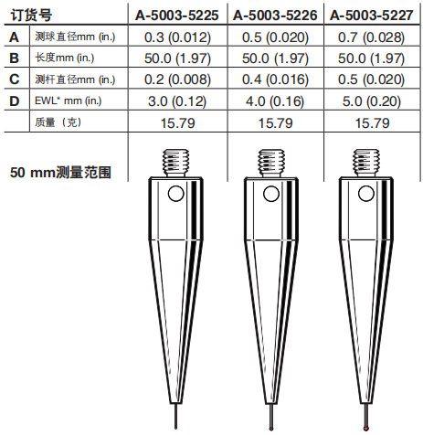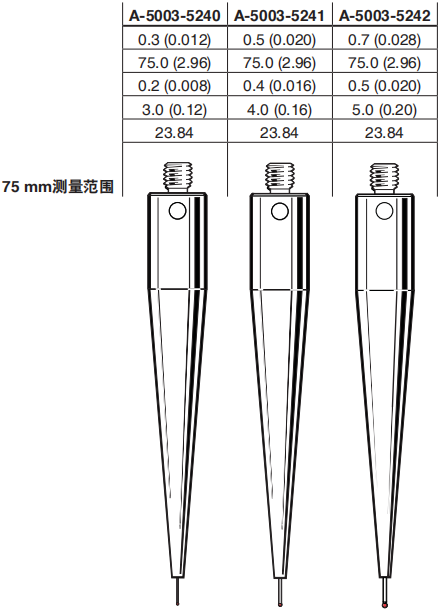 下列測頭全部使用M5螺紋測針,但配備適當?shù)霓D接頭也可使用其他螺紋規(guī)格的測針。