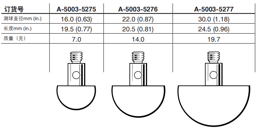 半球形測(cè)針可用于檢測(cè)粗糙表面和深位特征,例如內(nèi)孔。