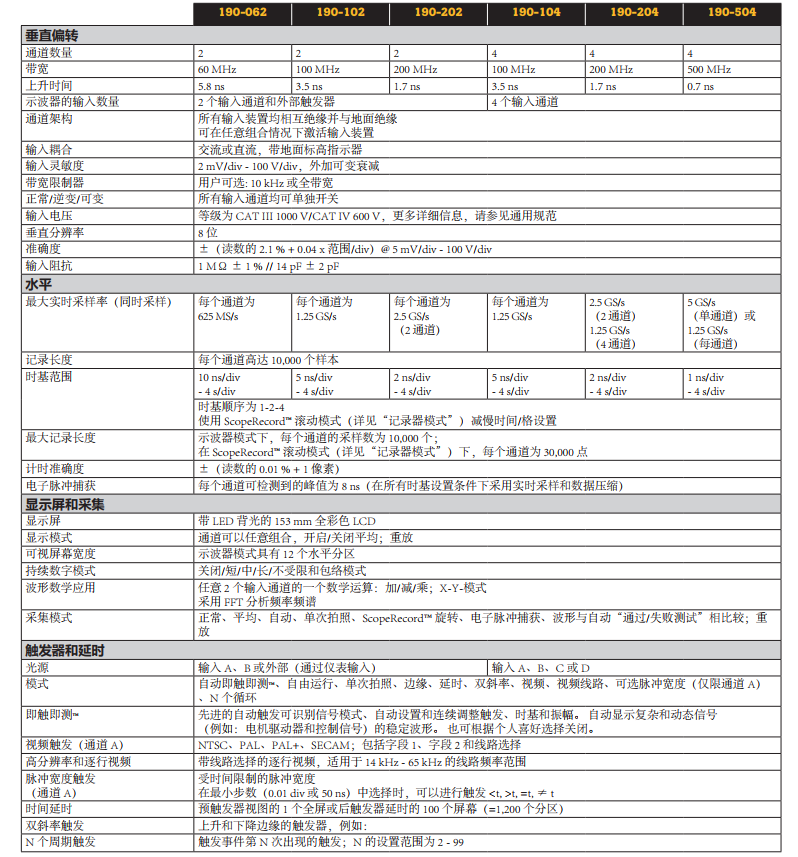 ※ 60 MHz、100 MHz、200 MHz 或 500MHz 帶寬型號(hào)可供選擇