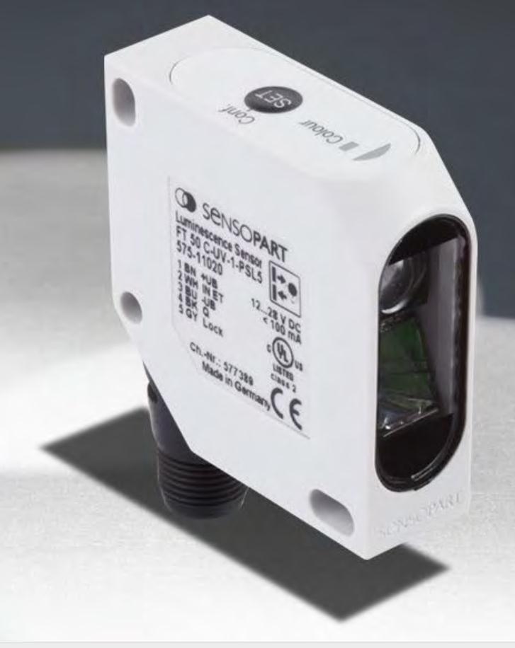 色標(biāo)和物體(尤其是粗糙的、臟污的物體)表面之間細(xì)微的對(duì)比度或顏色差異的區(qū)分,對(duì)傳統(tǒng)的顏色傳感器或?qū)Ρ榷葌鞲衅魇蔷哂刑魬?zhàn)性的。在這種情形下,熒光特性的評(píng)估方法為其提供了可能。當(dāng)希望產(chǎn)品上的標(biāo)簽肉眼不可見(jiàn),在熒光傳感器的幫助下,可以檢測(cè)到內(nèi)嵌在藥品盒的打印標(biāo)簽、木質(zhì)材料表面的粉筆標(biāo)記、灌裝時(shí)瓶子的準(zhǔn)確定位等。其他的應(yīng)用還包括:加入熒光物質(zhì)檢測(cè)油的存在性,監(jiān)視紙上是否有粘合劑等。目前市面上大多熒光傳感器需要附加濾鏡才能達(dá)到既定目標(biāo),但森薩帕特FT50-C-UV傳感器帶有三路接收 系統(tǒng),用戶可通過(guò)施教選擇合適的RGB光譜在整個(gè)可見(jiàn)光光譜范圍內(nèi)對(duì)發(fā)光物質(zhì)進(jìn)行評(píng)估。而且,它也可依據(jù)發(fā)光物質(zhì)發(fā)射頻率的不同區(qū)分不同的發(fā)光物質(zhì)。即使發(fā)光物質(zhì)量很少,這類功能強(qiáng)大的傳感器都能可靠檢測(cè)到。即使是具有高反射率的物體表面或變化的物體距離都沒(méi)有影響,例如抖動(dòng)的目標(biāo),如紙張等。無(wú)論什么情況,森薩帕特都能為您提供可行的自動(dòng)化解決方案!