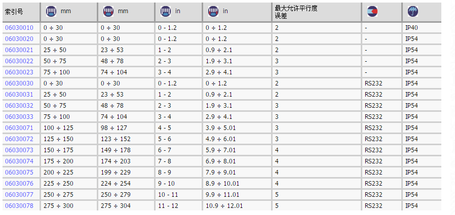 測量范圍>100 mm:有檢驗報告和符合性聲明