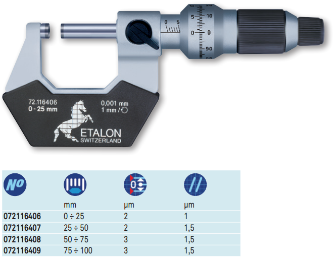 ETALON MICRORAPID 226千分尺有一個以公制單位表示的游標刻度,用于精確測量外徑(OD),一個摩擦驅動套管機構,用于調節(jié)期間的均勻壓力,碳化鎢表面耐磨損。
