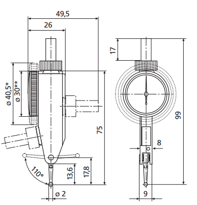 測量范圍 | 分度值 | 表盤直徑 | 測力 | 側(cè)桿長度 | 訂貨號 |