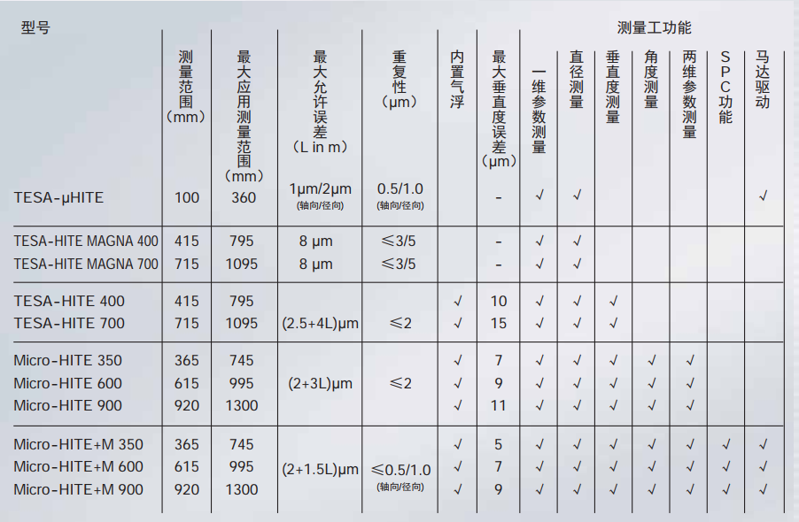 ?TESA測(cè)高儀關(guān)鍵參數(shù)一覽表(新型號(hào)請(qǐng)參考詳細(xì)介紹)