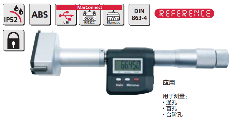 數(shù)顯自定心內(nèi)徑干分尺M(jìn)icromar 44 EWR,源自于絕對(duì)零點(diǎn)的測量系統(tǒng),可實(shí)現(xiàn)立刻開始測量主體結(jié)構(gòu)包含:數(shù)顯測微頭40EWg和測量頭44Ak。
