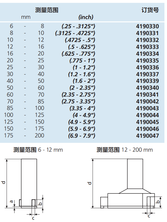 ●從40mm開始的測量頭全部為鋁質(zhì),以減輕重量