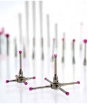 選擇測針時一定要非常謹(jǐn)慎,以確保*適合您的測量應(yīng)用。本章描述了測針及附件的主要類型、關(guān)鍵參數(shù)及材料屬性。如果您想在配有固定傳感器的坐標(biāo)測量機上對工件進(jìn)行全面測量,通常需要很多測針,這些測針安裝在不同方向,并需要不同形狀的測針組件、加長桿及關(guān)節(jié)。所有這些組件的組合稱為測針配置,安裝在轉(zhuǎn)接塊上。雷尼紹生產(chǎn)一系列不同材料的測針組件,因此您可以自行搭配測針配置,使其符合測量應(yīng)用。